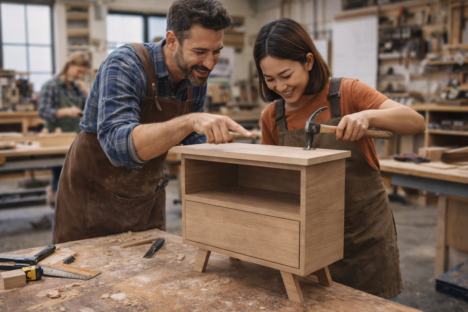 Harmony Design Studio provides four main services that balance education and design-led furniture making. Each is designed to generate value, build skills, and strengthen brand identity.